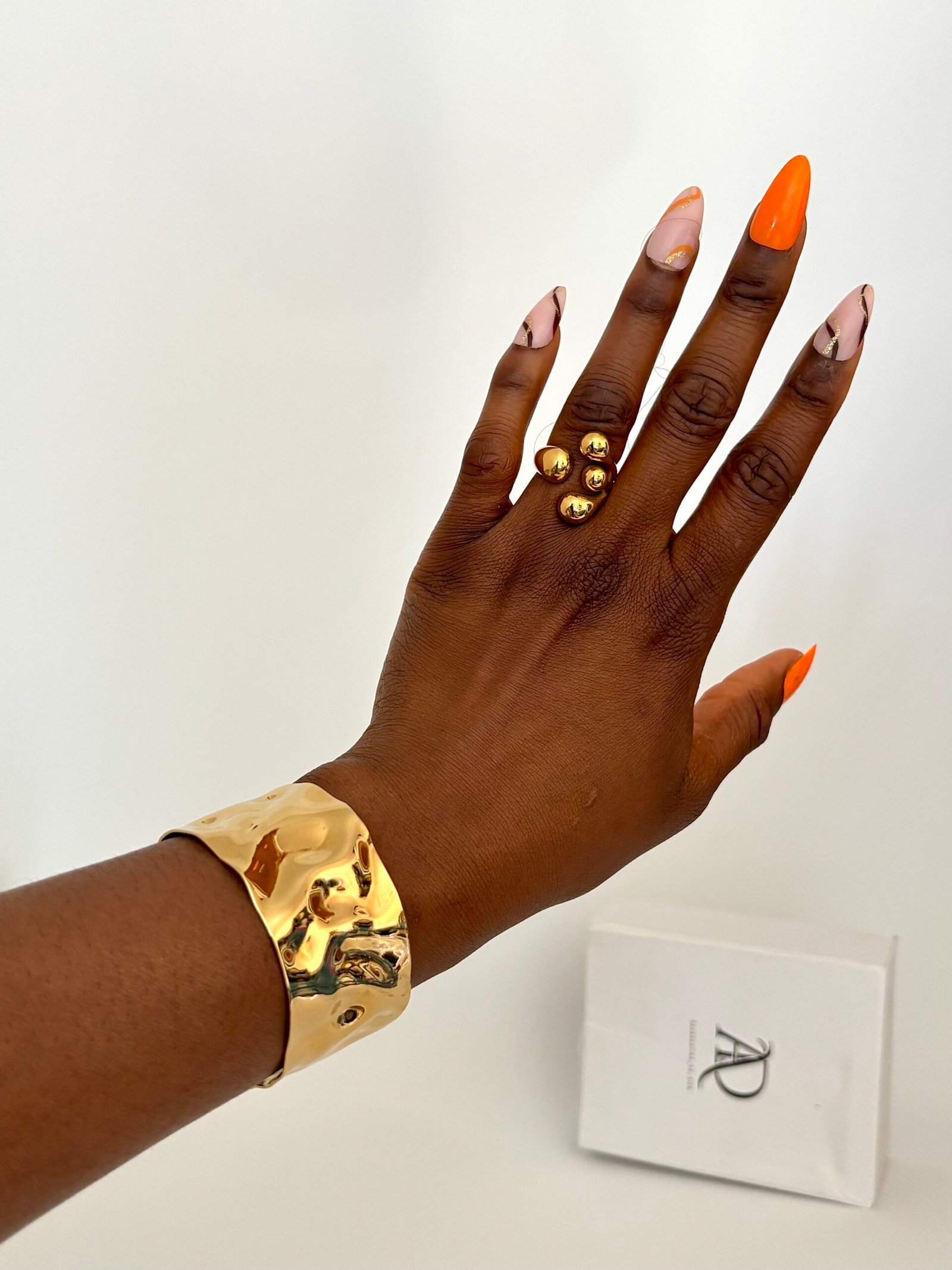 18k real gold plated stainless steel rings, hypoallergenic and waterproof. Fits size 7-9